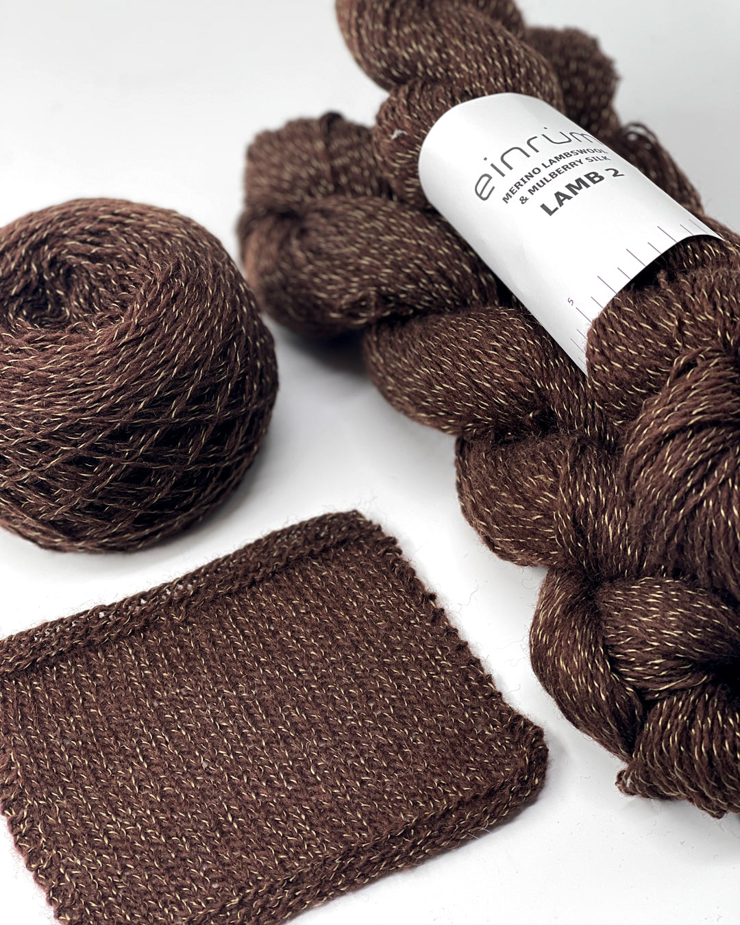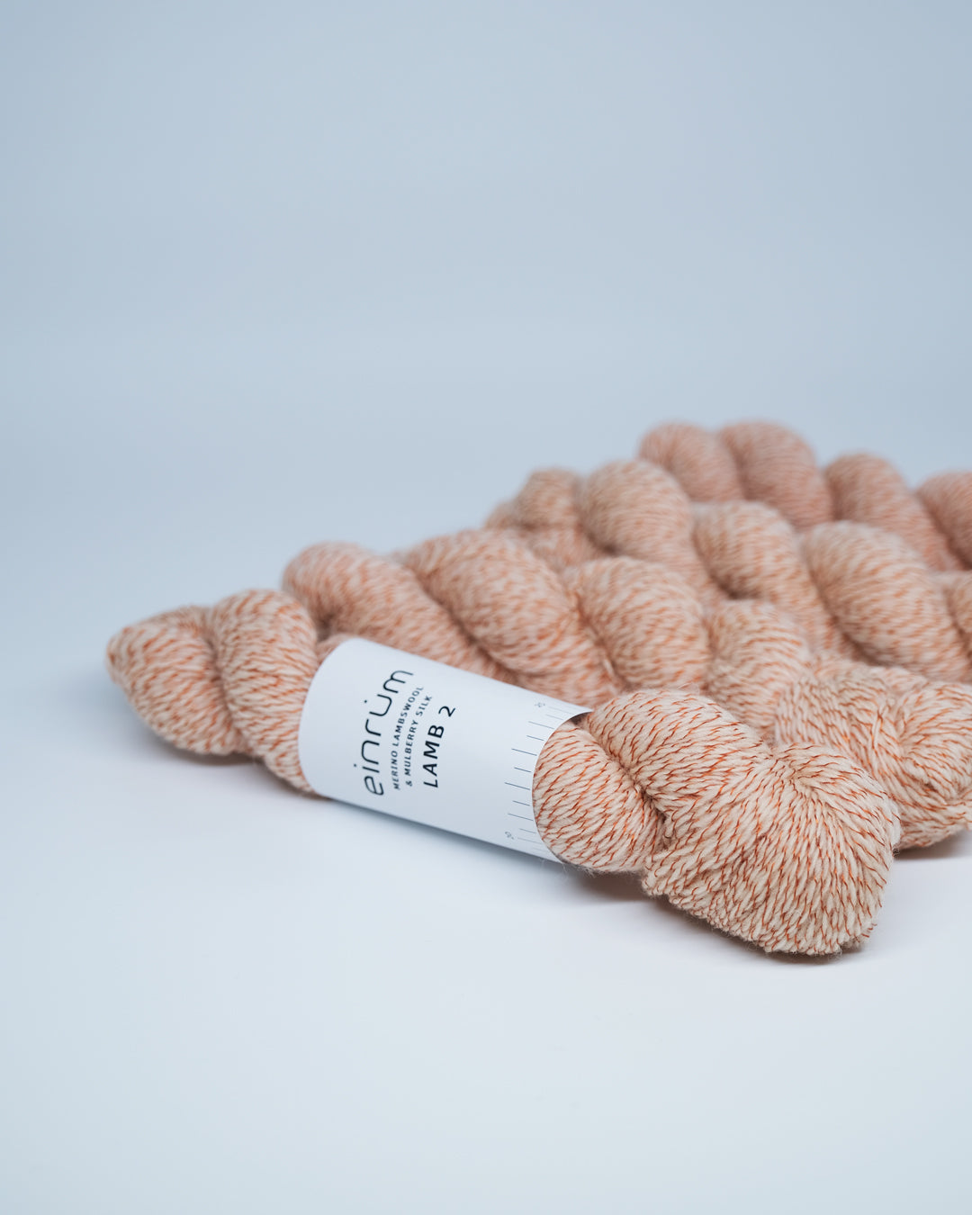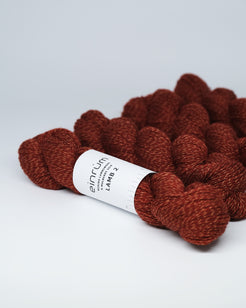 Discover the exquisite blend of tradition and luxury with einrúm LAMB yarn, a unique fusion of merino lambswool and mulberry silk. This delicate yarn is produced in Denmark. The LAMB yarn combines the fine fibres of merino lambswool with the exquisite quality of mulberry silk, creating a truly unparalleled texture. The addition of the silk threads not only softens the wool but also brings luminance to the wool’s matte finish.